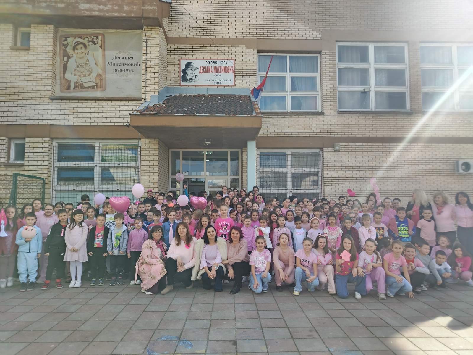 „Обасипајмо љубазношћу и добротом све у нашој околини“ – слоган под којим су ученици, васпитачи, наставници и учитељи наше школе уз подршку чланова Вршњачког тима и Ученичког парламента симболично обележили Дан розе мајица – Међународни дан борбе против вршњачког насиља.